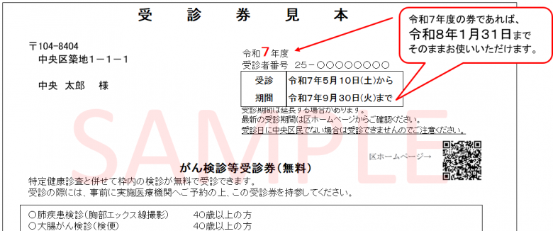 - 注記1:「令和7年度」と書かれた受診券であれば、引き続きそのままお使いいただけます。